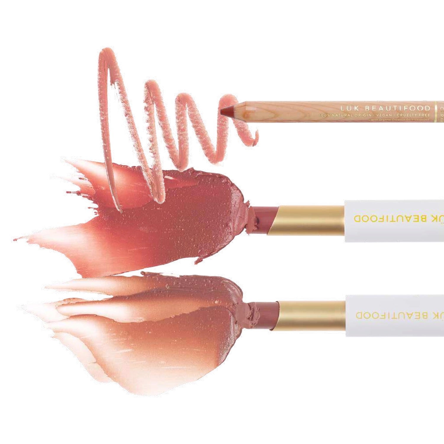 This Luxe Lip Trio contains two delicious crème-soft, 100% natural Lip Nourish™ and one creamy, long lasting demi-matte Lipstick Crayon. The perfect combination to hydrate and feed lips for an effortless, healthy glow.